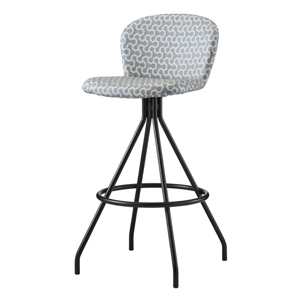 花びらのようなモールド本体をスリムなデザインで、カフェやオフィスを柔らかな印象に。乗り降りがしやすいように回転式のスタンド脚で上部が回転する設計となっています。