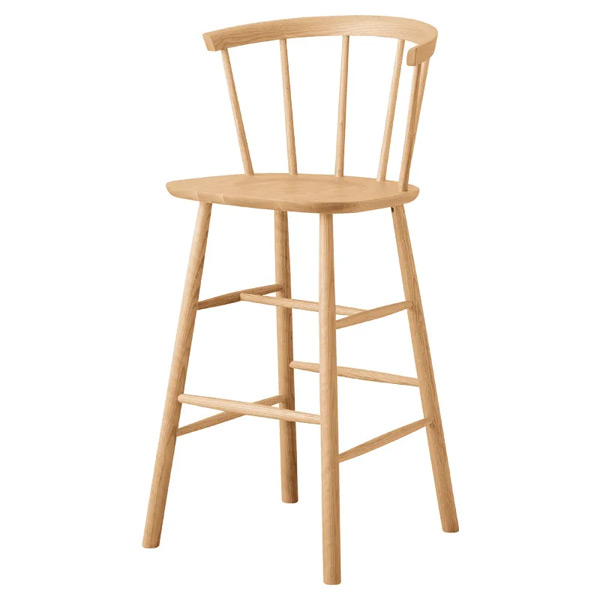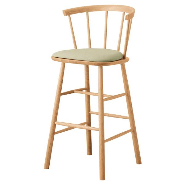 背もたれのスポークデザインが特徴的。ナチュラルウッドの素材感と相まって、どこか懐かしく落ち着いた印象を与えます。