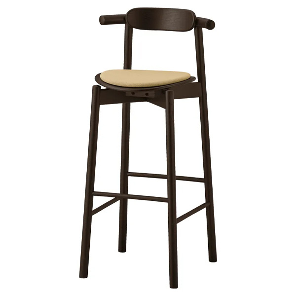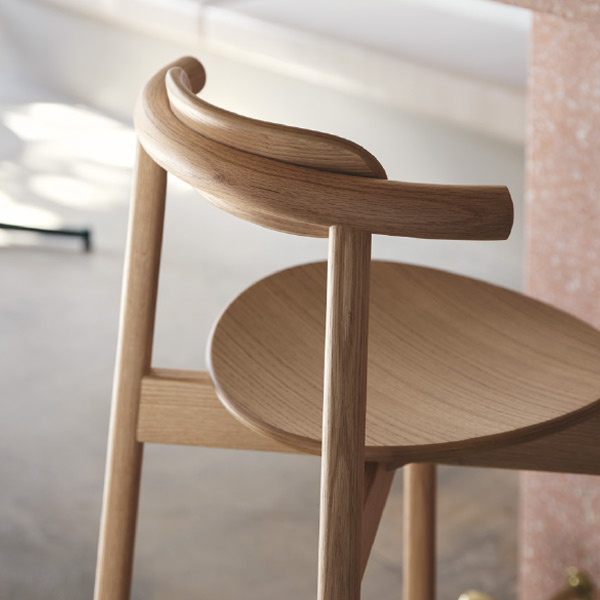 丸みを帯びた背もたれとナチュラルウッドの脚が、空間に温もりとやさしさを与えます。カフェやナチュラルモダンな空間に最適。