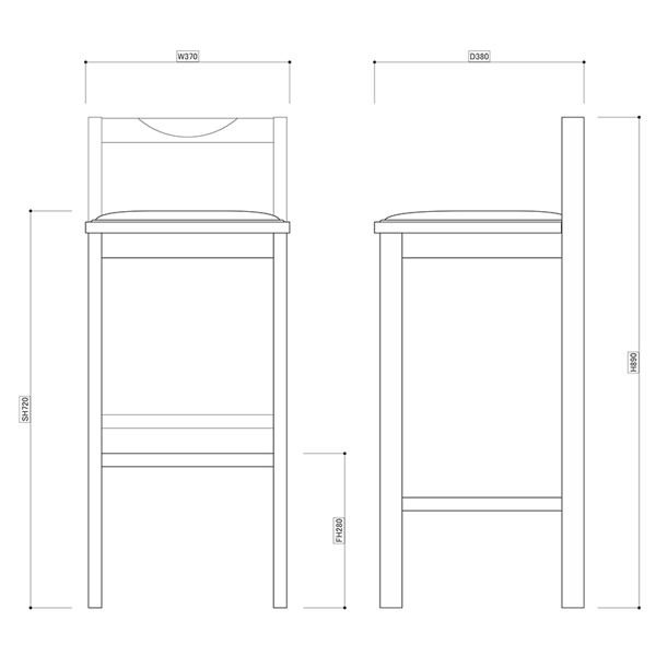 オーク材のフレームが美しい和風テイストなカウンターチェア。背もたれは握りやすい加工がなされています。