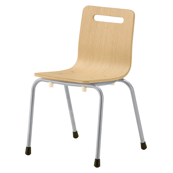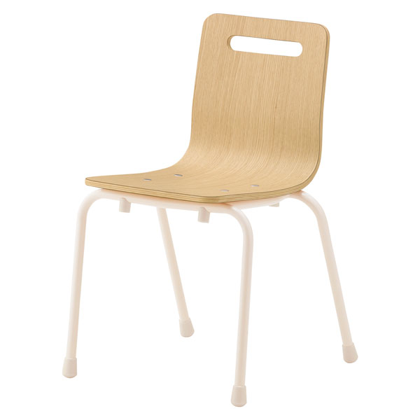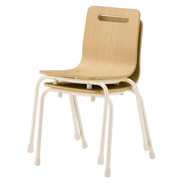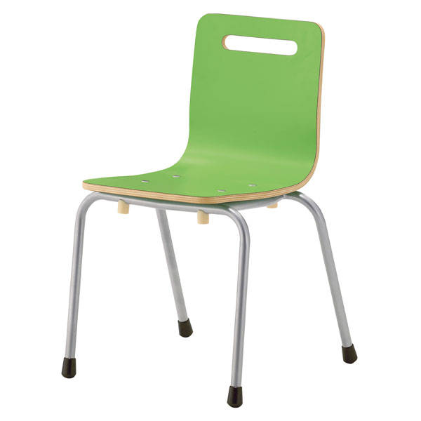 表面がメラミン化粧板でメンテナンス性の良い、L型成型合板のカラフルなキッズチェア。スタッキングもできるシンプルなフォルムは様々なシーンで使用できます。