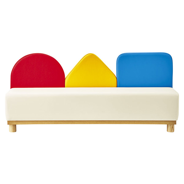 『カタチ』に触れるキッズファニチャー。○△□の図形を並べたデザインです。