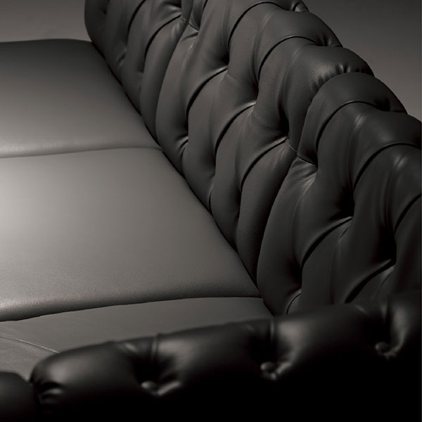 ゆったりとした掛け心地と表情豊かな背が特徴のソファ。空間に深みを与えるボタン締め加工は、職人がひとつひとつ手作業で仕上げています。