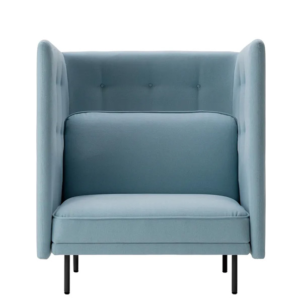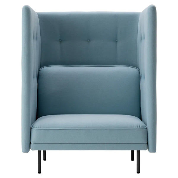 両サイドと背面を囲うウィング型パネルが、音や視線を遮り、半個室のようなプライベート空間を提供。集中時や休憩時に最適です。ローバックとハイバックからお選びいただけます。