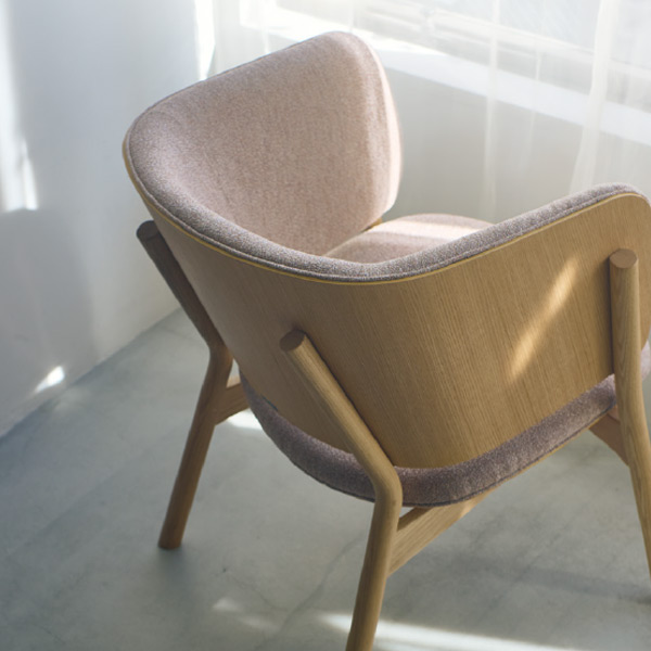 ナチュラルな木脚と、しっかりとした布張り座面が調和。北欧テイストやナチュラルモダンな空間によく合います。