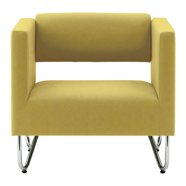 一体感のある座と肘に対し、浮遊感のある背がモダンな空間を演出します。座はSバネを使用し柔らかに仕上げています。