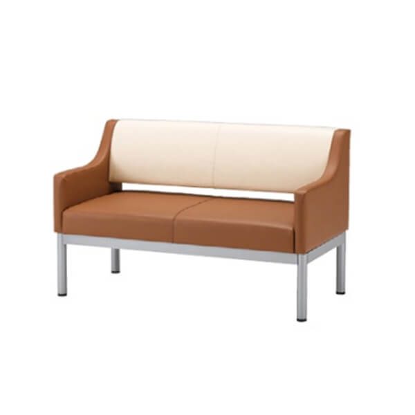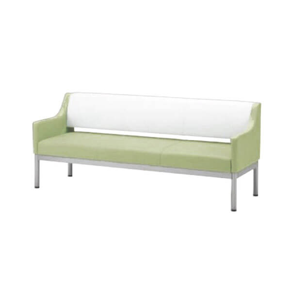 R形状の肘が特徴的なロビーチェア。背面と座面を切り離したお手入れ(掃除)しやすい設計で、中肘付・中肘無しの2パターンと多彩な色を使用。待合空間にご利用いただけます。