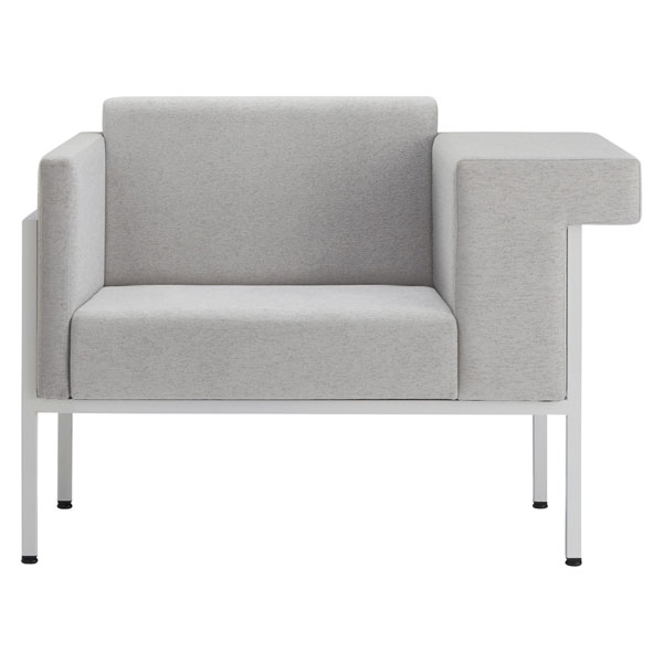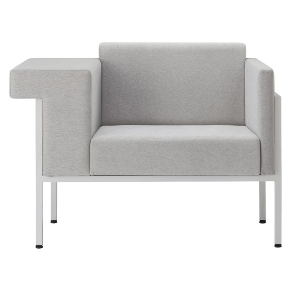 片方の肘幅が広いのがポイントのワーキングソファ。幅広の肘にパソコンやタブレットを置いて作業することもできます。