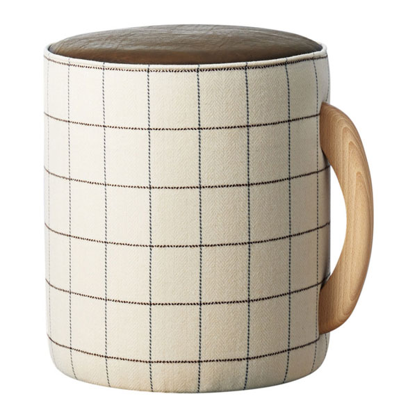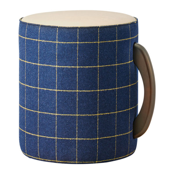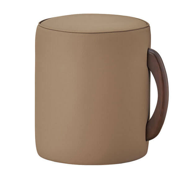 『マグカップ+木取手=モクカップ』という、遊び心から生まれたデザインスツール。張地の組み合わせにより、オリジナルのモクカップをおつくりいただけます。