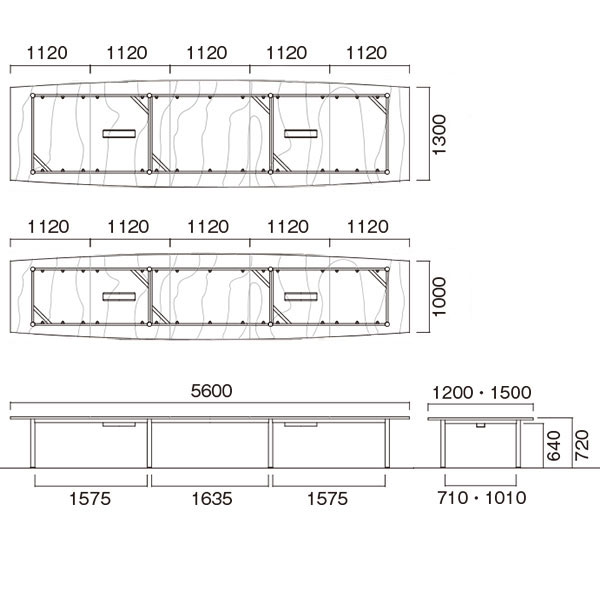 天板サイズ:W5600×D1200 天板カラー:WN(ウォールナット) 脚部カラー:B(ブラック)