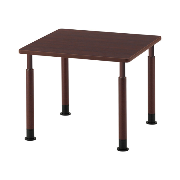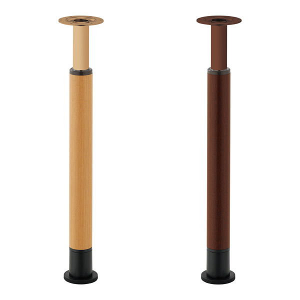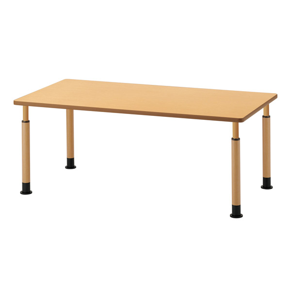 木目シート仕上げの昇降脚付スチールポール脚。利用者に合わせて、きめ細やかな高さ調整ができます。テーブル天板は抗菌機能付きで衛生面でも安心です。