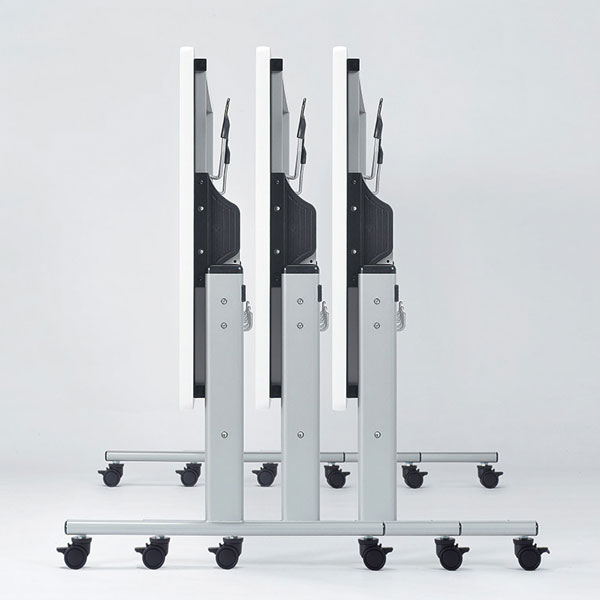 サイドスタッキング、アジャスト機能付キャスターの高機能。清掃・移動・収納などに便利なチェアハンギングタイプの食堂テーブルです。