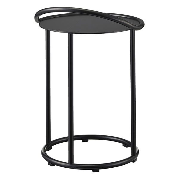 タンプイス、タンプスタンドと同じサイズのリングで作られたタンプテーブル。同デザインのイスとスタンドと合わせることで、統一感を演出できます。天板はスチールタイプとガラスタイプの2タイプから選べます。