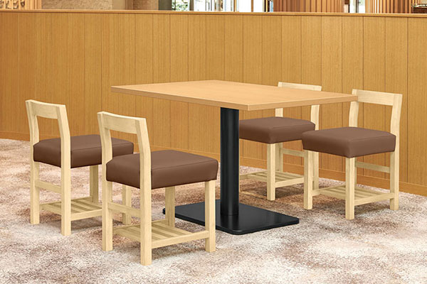 衛生的な抗菌仕様の和風テーブルです。天板エッジは、耐久性に優れたABSエッジタイプ。