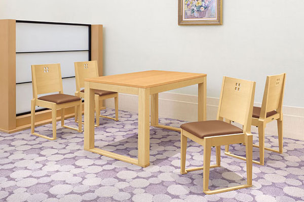 抗菌仕様・指紋レスのメラミン化粧板天板テーブル。4種類のサイズからお選びいただけます。畳・カーペットのお部屋にもお使いいただける「そり脚」タイプです。